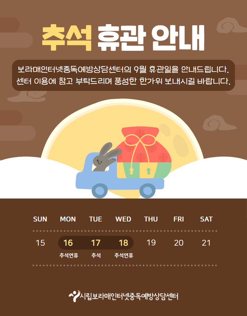 | 2024³â 9¿ù Ãß¼® ÈÞ°ü ¾È³» | |