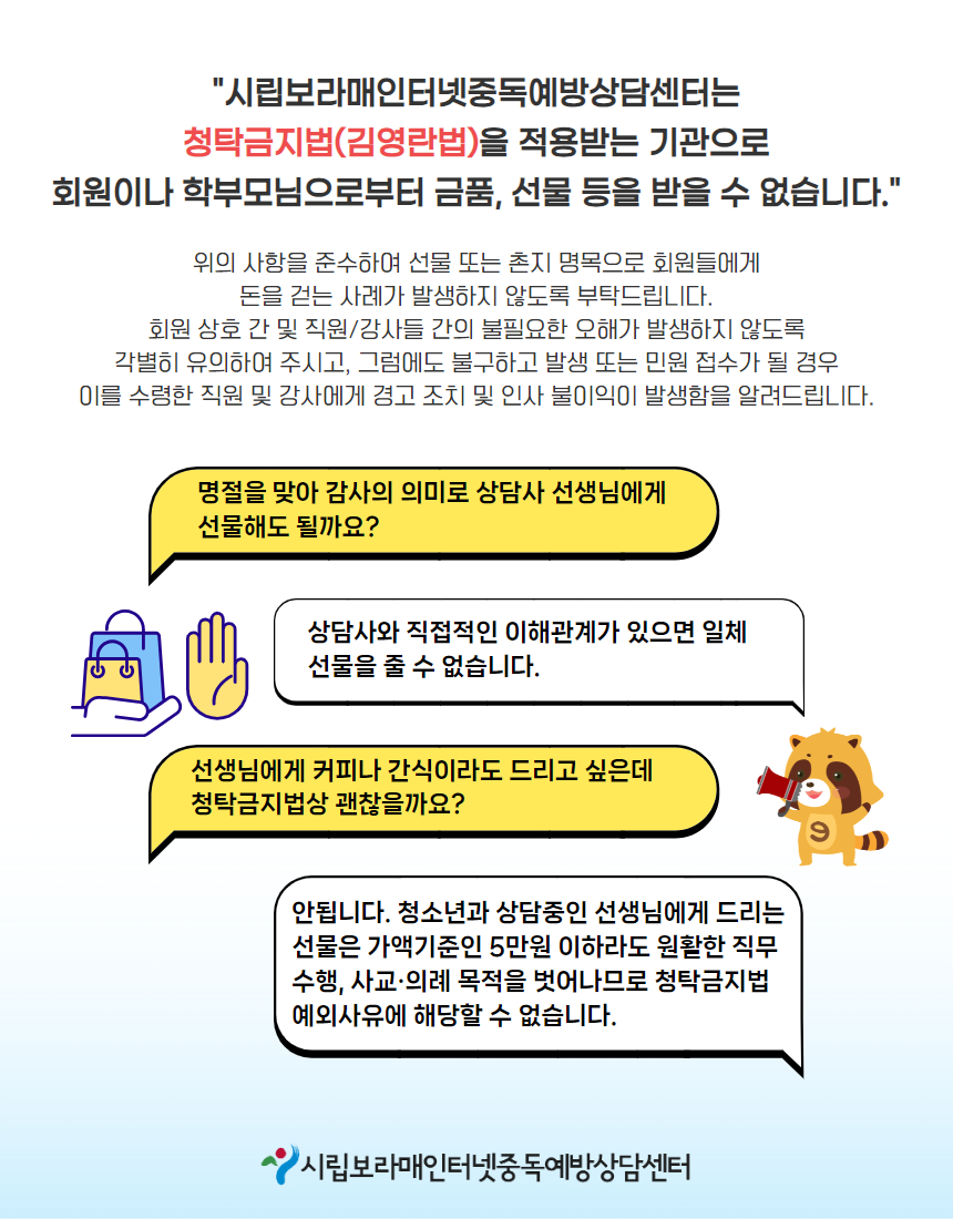 | [½Ã¸³º¸¶ó¸ÅÀÎÅͳÝÁßµ¶¿¹¹æ»ó´ã¼¾ÅÍ] ûʱÝÁö¹ý ¾È³» | |