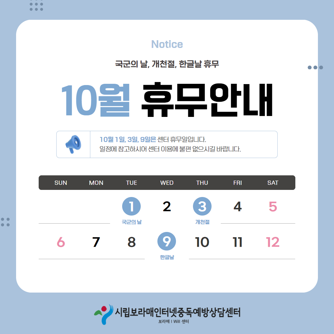 | 2024³â 10¿ù ¼¾ÅÍ ÈÞ¹« ¾È³» | |