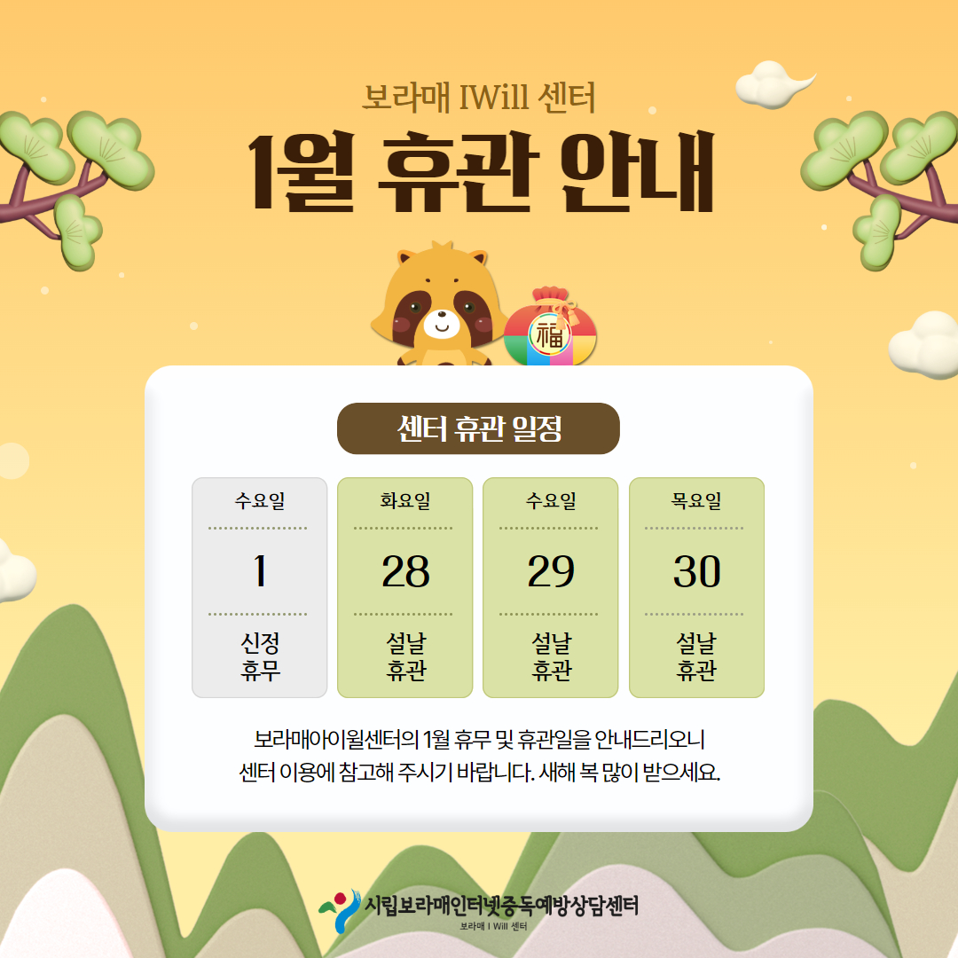 | 2025³â 1¿ù ¼¾ÅÍ ÈÞ°ü ¾È³» | |