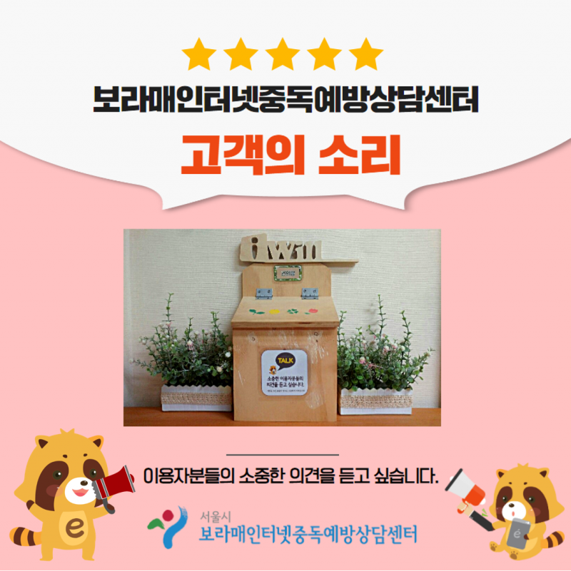 | º¸¶ó¸ÅÀÎÅͳÝÁßµ¶¿¹¹æ»ó´ã¼¾ÅÍ °í°´ÀÇ ¼Ò¸®ÇÔ | |