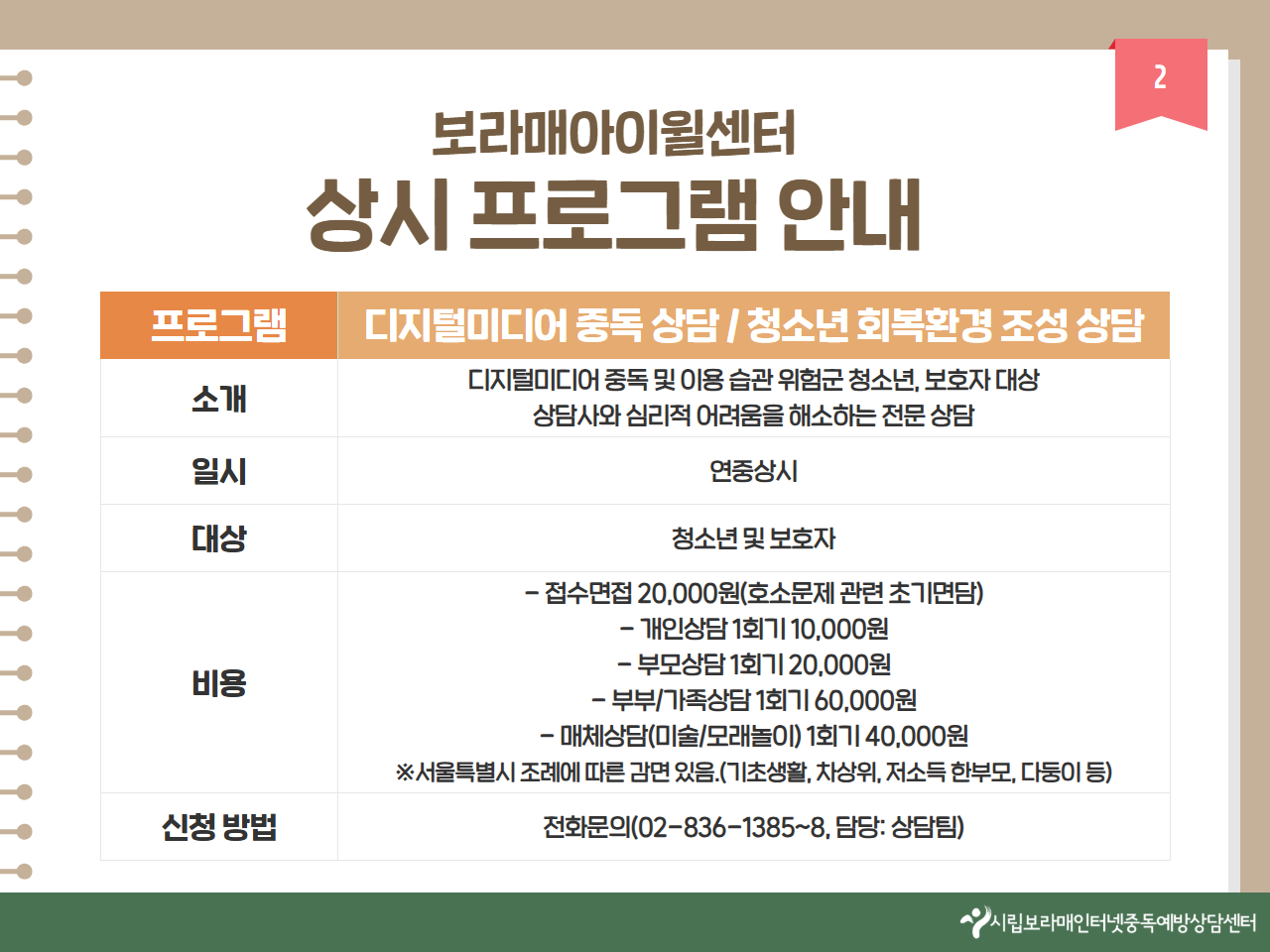 | [Ä«µå´º½º] [1¿ù ¸ðÁý] º¸¶ó¸ÅÀÎÅͳÝÁßµ¶¿¹¹æ»ó´ã¼¾ÅÍ »ó½Ã ¹× ¸ðÁý ÇÁ·Î±×·¥ ¾È³» | |